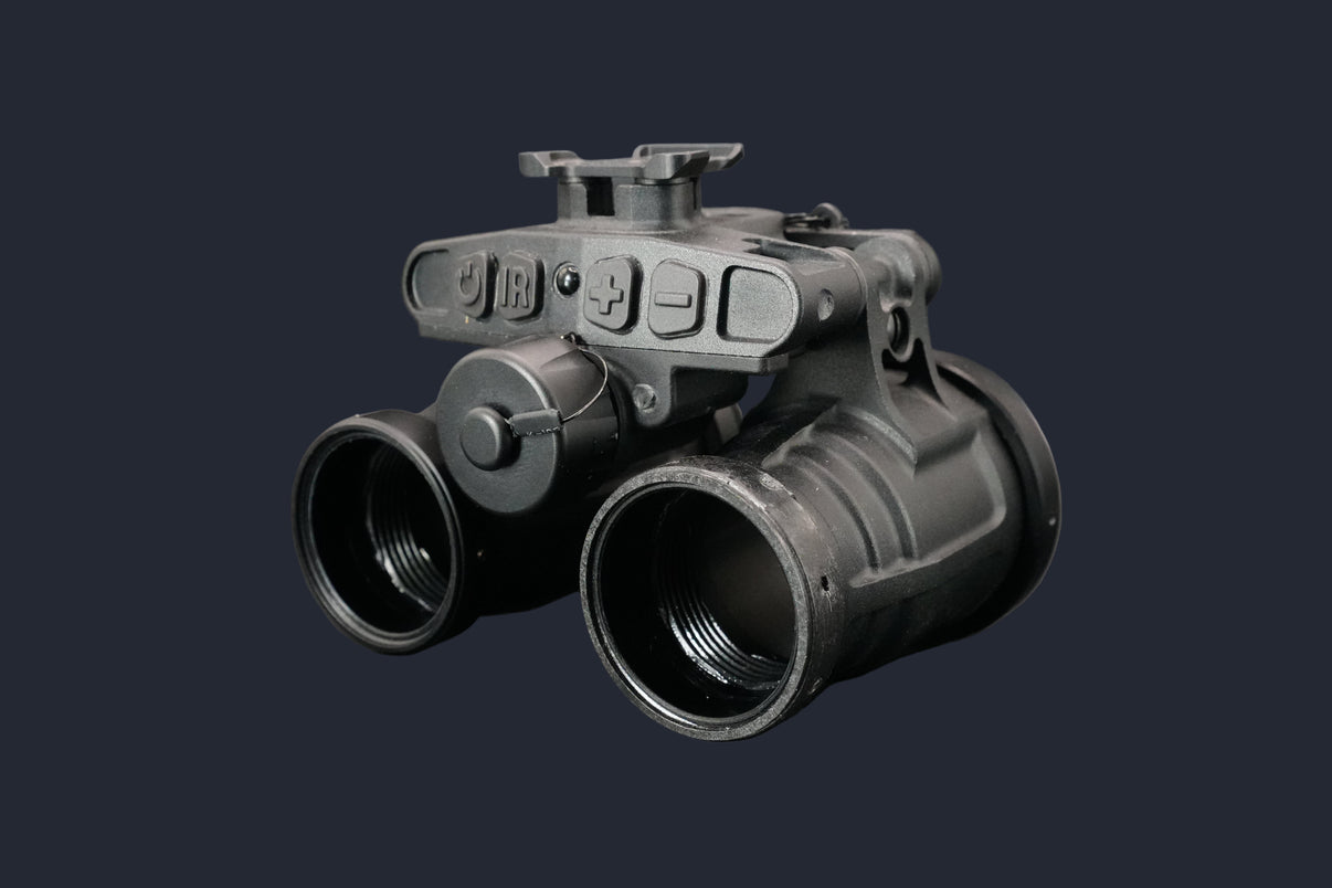 The Manticore-Ruggedized is the top-of-the-line, full-feature binocular currently in the Nocturn Industries lineup. This binocular features digital manual gain control, individual pod stow shutoff, IPD stops, user-adjustable pod tension, IR illuminator and indicator, and a low-battery indicator.